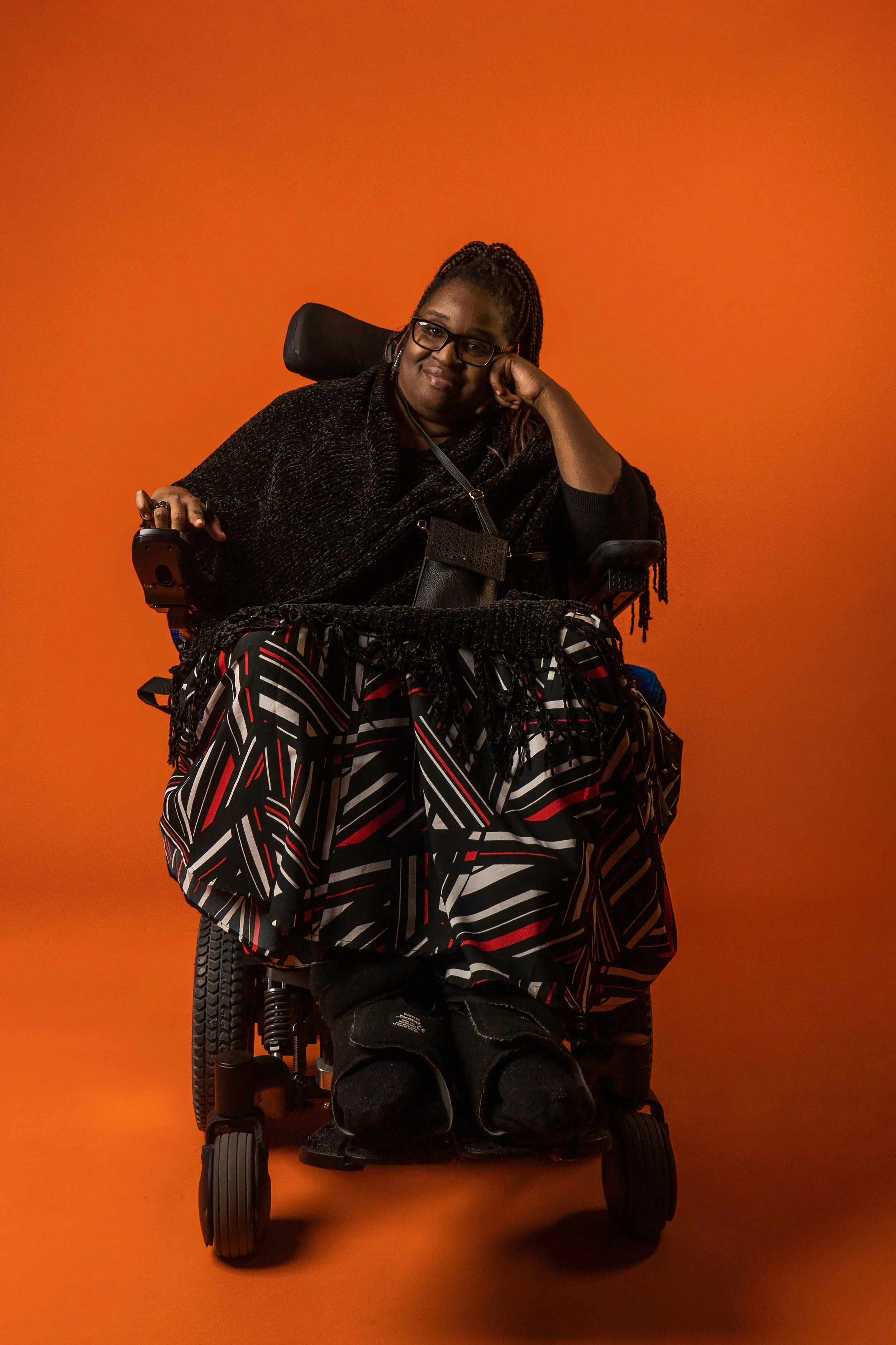 Originally she could not speak or move. Currently she speaks and uses a power wheelchair. She is paralyzed and has limited use of her hands.